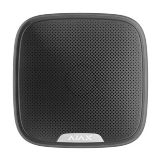 Sirène sans fil extérieure combinant alarme sonore (85–113 dB) et signal lumineux, connectée au Hub via radio Jeweller (portée ~1 500 m, protocole sécurisé). Autonomie jusqu’à 5 ans sur piles, étanchéité IP54, détecteur antivol (tamper + accéléromètre), réglages via l’application mobile.